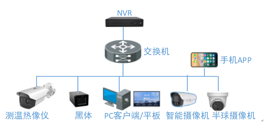 在视频监控的基础上实现无感测温(测温范围:0°C~50℃;测温精度≤±0. 3℃)、智能识别人体、戴不戴口罩、人员入侵和语音报警等功能。APP实时接收信息,管理人员可以快速响应。便捷部署,方便管理,节省人力。