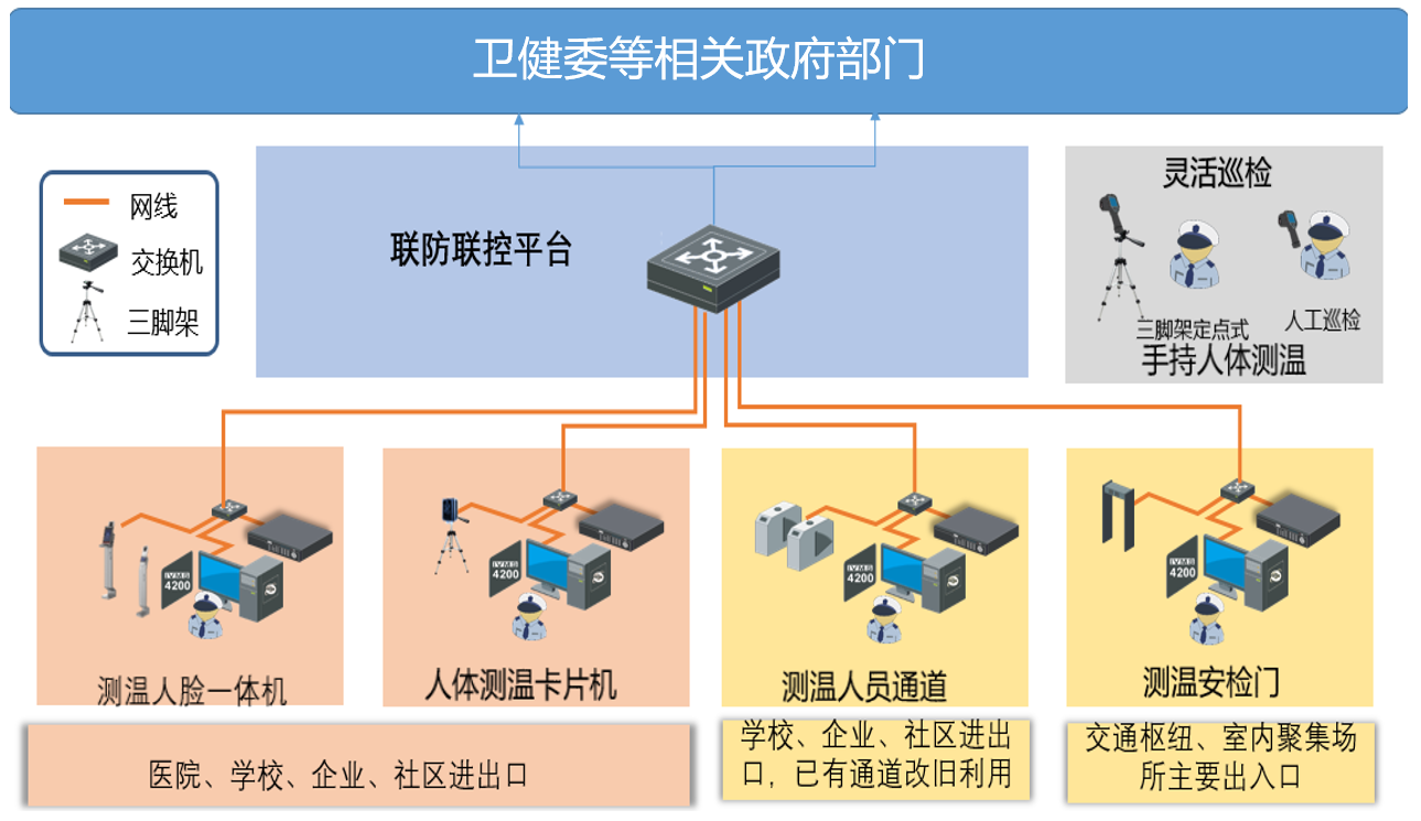 无感测温+实证登记+通行控制解决方案适用于小区、学校、企业、政府等疫情防控的重点地方,满足涉疫情人员识别快、人员出入实时测温管控、人员进出频次实时管控的需求,有效提高核查及防控效率。