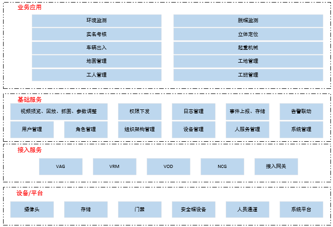 视频监控系统:工地网络环境复杂,应满足网络施工部署要求。工地管理工业化水平较低,分布地区分散,满足多方位的视频可视需求。充分利用设备智能分析、多视角、多维度特性。