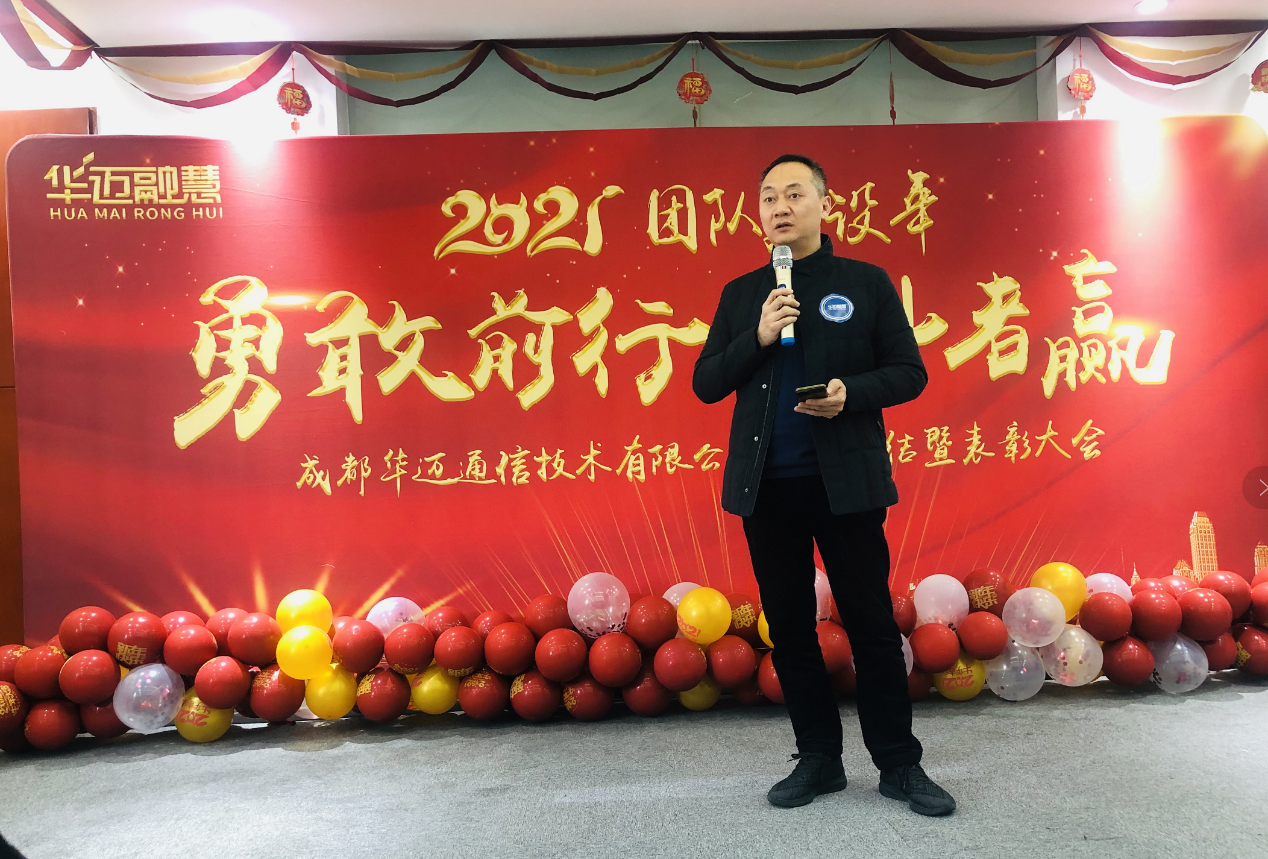 成都华迈吴沅虎董事长在会上发言,他表达了对公司发展和员工成长的无限期许。2020年是成都华迈发展史上不平凡的一年,这一年,公司克服新冠疫情、市场竞争加剧等一系列不利因素,上下一心,迎难而上,我们超额完成了年初制定的销售目标,交上了一份满意的答卷。