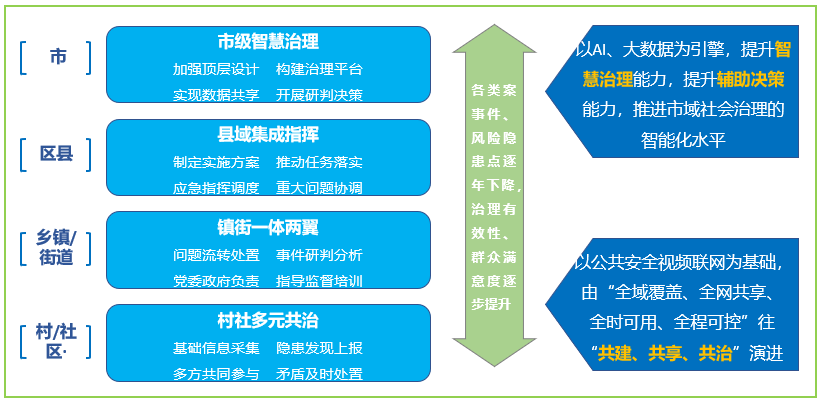 市域社会治理现代化、公共安全视频联网、智慧社区、基层网格管理、指挥调度、雪亮工程AI+……
