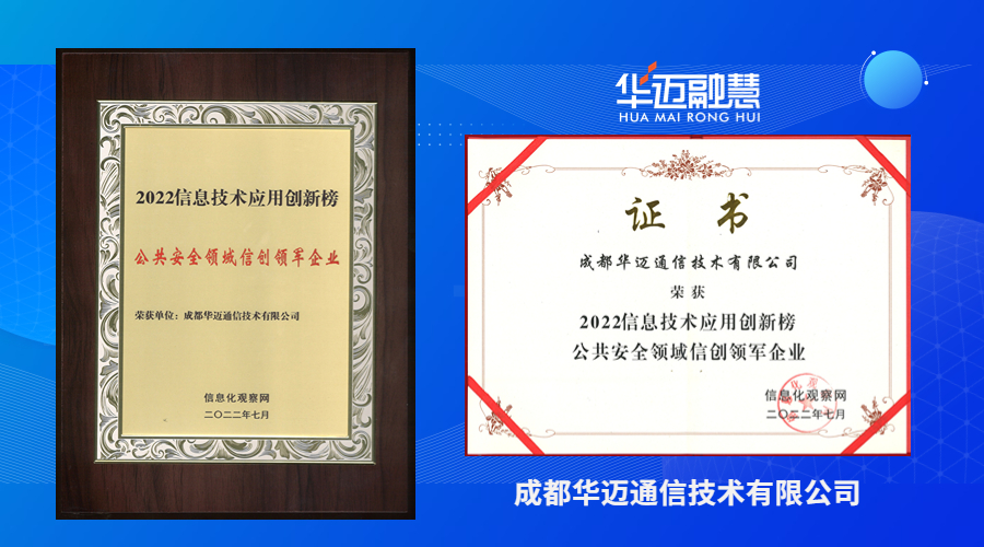 为全面展示信创发展最新成果,推动信息技术应用创新走深入实,寻找并树立信创领域的典范企业。会上,主办方遴选了过去一年中在中国信息技术应用创新方面做出突出成绩的企业、优秀人物以及表现卓越的产品和创新技术,并给予表彰。成都华迈通信技术有限公司凭借优秀的技术实力和业务能力脱颖而出,荣获“2022信息技术应用创新榜 · 公共安全领域信创领军企业”。
