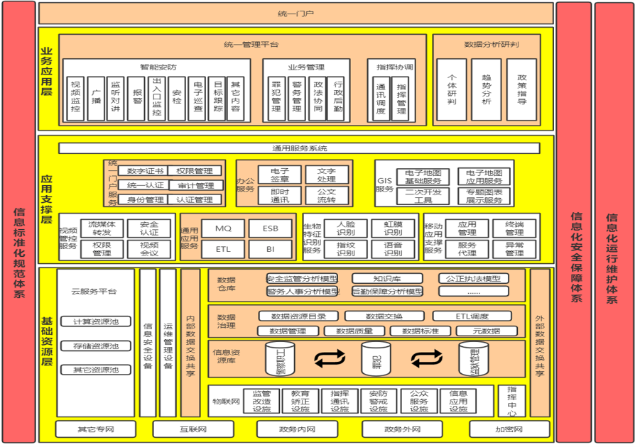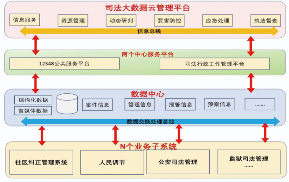 在司法部“一朵云、二平台、三入口”的“数字法治、智慧司法”的总体规划下,通过大数据、云计算、物联网、人工智能等先进技术,形成智慧监狱、智慧法院、智慧检务、智慧司法等解决方案。